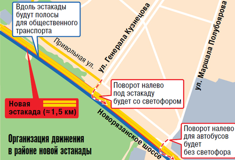 Цитата Автомобили поедут по Новорязанскому шоссе над автобусами — для них построят эстакаду Как сообщили «МК» в Градостроительном комплексе, эстакада будет построена на Новорязанском шоссе, в том месте, где магистраль пересекается с улицами Генерала Кузнецова и Маршала Полубоярова. Уже в следующем году здесь может открыться станция метро. А сегодняшнее положение въездов-выездов достаточно сложное как для автомобилистов, так и для общественного транспорта. Сегодня с улицы Генерала Кузнецова можно повернуть на Новорязанское шоссе лишь направо. А перекресток с улицей Полубоярова всегда регулирует светофор. После открытия эстакады и сети развязок под ней пропускная способность участка должна увеличиться на 15 процентов. Так, с улицы Кузнецова можно будет повернуть в сторону области — для этого поставят светофор. А вот общественный транспорт сможет поворачивать с ул. Полубоярова в область, не обращая внимания на сигналы светофора. Простым автомобилистам по-прежнему придется ждать зеленого. Кроме того, для автобусов решено выделить сразу две полосы по четной стороне Новорязанки. Причем движение по ним будет осуществляться в обе стороны. Что же касается самой эстакады, по которой и будут двигаться автомобилисты, то она будет иметь по 3 стороны движения в обе стороны, а также две полосы безопасности по бокам. : ![]() http://www.mk.ru/daily/hotnews/article/2012/07/26/730130-na-novoryazanskom-shosse-avtomobili-razvedut-s-avtobusami.html Я не понимаю вот этого. Вместо одного светофора втыкают еще один + две полосы под автобусы отдают и при этом ждут что пропускная способность вырастет на 15%. Строить дорогущую эстакаду и одновременно втыкать светофор, бред какой то. | |