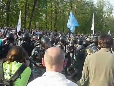 Чтобы повернуть колонну демонстрантов ОМОН должен был освободить ей полукруг радиусом в эти же 30 метров, чтобы колонна могла повернуться как единое целое и пройти на набережную Болотной площади. И там вполне хватало места для такого расположения ОМОНа - надо было ему всего лишь отойти на 30 метров и встать полукругом, чтобы колонны могли нормально поворачивать на Болотную. В конце-концов, даже если кордон из ОМОНа изаначально был неправильно спланирован, ничто не мешало ответственным лицам, увидев создавшуюся непростую ситуацию, дать команду и отодвинуть ОМОН на несколько метров назад. Но ОМОН сделал не так! Он вплотную притерся к мосту, и оставил узкий проход вбок-вправо, через который колонна целиком, сохраняя порядок, с баннерами, строем, пройти никак не могла - она могла только смешаться, стать не колонной, а толпой, побросать все баннеры и просачиваться вправо поодиночке. Колонна просто уперлась в ОМОН, лицом - и люди не знали что делать и куда идти. А сзади напирали еще и еще люди. Именно тогда, запертые в ловушке давки, тысячи митингующих, стали кричать ОМОНу «Пропускай!». Повторим - ТЫСЯЧИ ПРОТЕСТУЮЩИХ, а не десяток-другой подозрительных парней в капюшонах и масках на лице. Но ОМОН только сильнее сомкнул ряды. Давка усиливалась - крики женщин, стоны пожилых людей, и только после этого - первый файер, и толпа с трудом разорвала цепь ОМОНа на несколько минут. То, что люди, прорвавшие цепь ОМОНа, не были агресивны, видно на многих кадрах - никто из них, выскочив из давки, не стал нападать на бойцов сзади, люди спокойно стояли на свободном месте. Таким образом, совершенно очевидно, что ОМОН, расставив цепи кордона неправильно и не дав колоннам нормальным образом разворачиваться и проходить к месту согласованного митинга, виноват в создавшейся ситуации не меньше, чем те группы провокаторов в черных капюшонах с камнями и фаерами. Управление большими людскими массами - это основная профессиональная обязанность ОМОНа и его начальников, и они не могли не понимать, к чему приведет такое расположение цепей ОМОНа, вплотную к выходу с моста. И ничего не мешало отодвинуть эти цепи на 30 метров от моста, чтобы дать развернуться колоннам - эти 30 метров ничего не решают. Отсюда понятно, что это было сознательное решение руководителей ОМОНа. Какова была цель такого решения, мы не знаем, может быть - спровоцировать столкновение и показать демонстрантам, что мирные гуляния с лозунгами типа «Долой партию жуликов и воров!» и т.п. больше невозможны. 3. Многие люди хотели выйти из давки и последовавшем за ним жестким разгоном митингующих(пожилые, те кто боялся дубинок ОМОНа и не хотел попасть под них, те, кто просто не хотели в этом участвовать). Но ОМОН никого за свои цепи не выпускал, он методично дробил толпу на квадраты. И люди метались между дубинками и летящими со всех сторон пластиковыми и не только бутылками, камнями и т.д. Думаем, мы имеем право узнать, чем объяснить такой непрофессионализм ОМОНа и кто принимал решение по расстановке цепей ОМОНа на Болотной площади. Кто принимал решение «Всех впускать и никого не выпускать!», а если и выпускать, то только в автозаки? Считаем, что эти люди в ответе за произошедшее, за жестокий разгон и десятки пострадавших с обеих сторон. P.S. Есть на видео и кадры, за которые стыдно и страшно: тысячи российских мужчин, которы